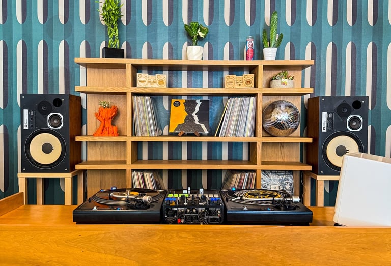 Full Circle Kitchen & Sound was created with intention by us — built by hand, without big investors, and driven purely by passion. What began as streaming sessions from our home, where friends would DJ while we cooked breakfast, has grown into the space you see today.
